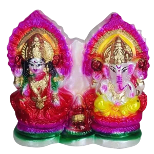 Beautifully handcrafted and hand-painted terracotta clay idol pair featuring Goddess Lakshmi and Lord Ganesha in vibrant multi-colors. Perfect eco-friendly choice for Diwali celebrations, home temple worship, and festive decorations.