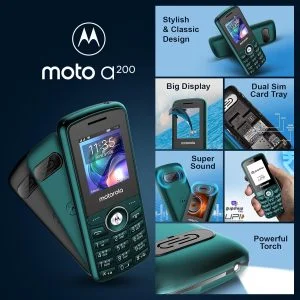 Motorola Teal Blue All-New A200 Dual Sim keypad Phone (with Voice Feature)