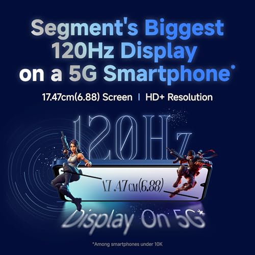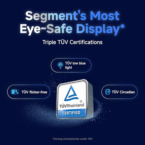 • 🎬 Immersive Cinema-View Display Enjoy your favorite content on a massive 6.88″ HD+ Dot Drop Display. With a 120Hz high refresh rate, scrolling is smoother, and gaming feels more responsive. The screen is TÜV Rheinland certified for Low Blue Light, keeping your eyes protected during long viewing sessions.