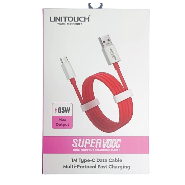 Unitouch UT-65 is a 1-meter USB Type-C cable supporting 65W SuperVOOC fast charging and high-speed data sync, compatible with OnePlus Nord series and other VOOC-enabled devices. Durable with smart chip technology for optimal charging safety.